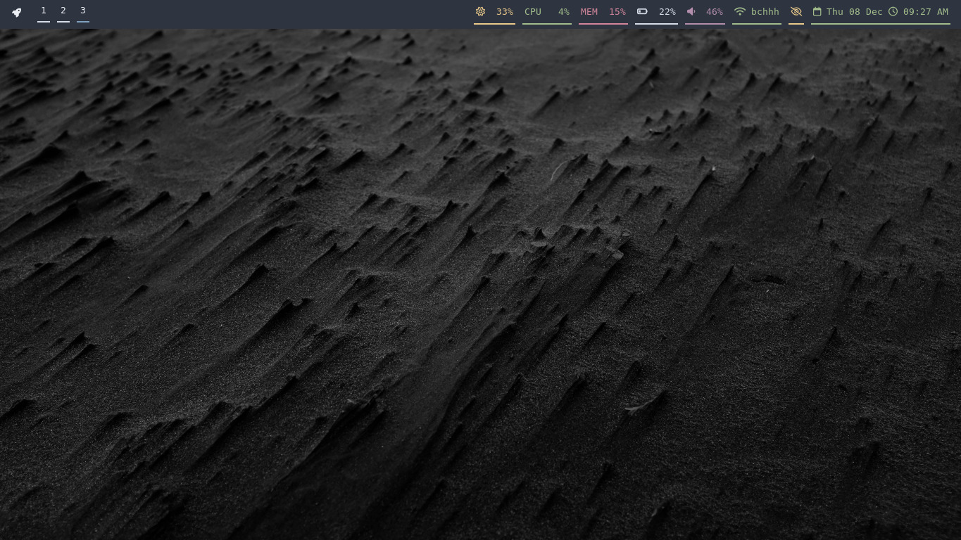 Overall, I think I achieved what I was aiming for. After logging in (there is no login manager, you do it directly through the boot terminal) you will see: