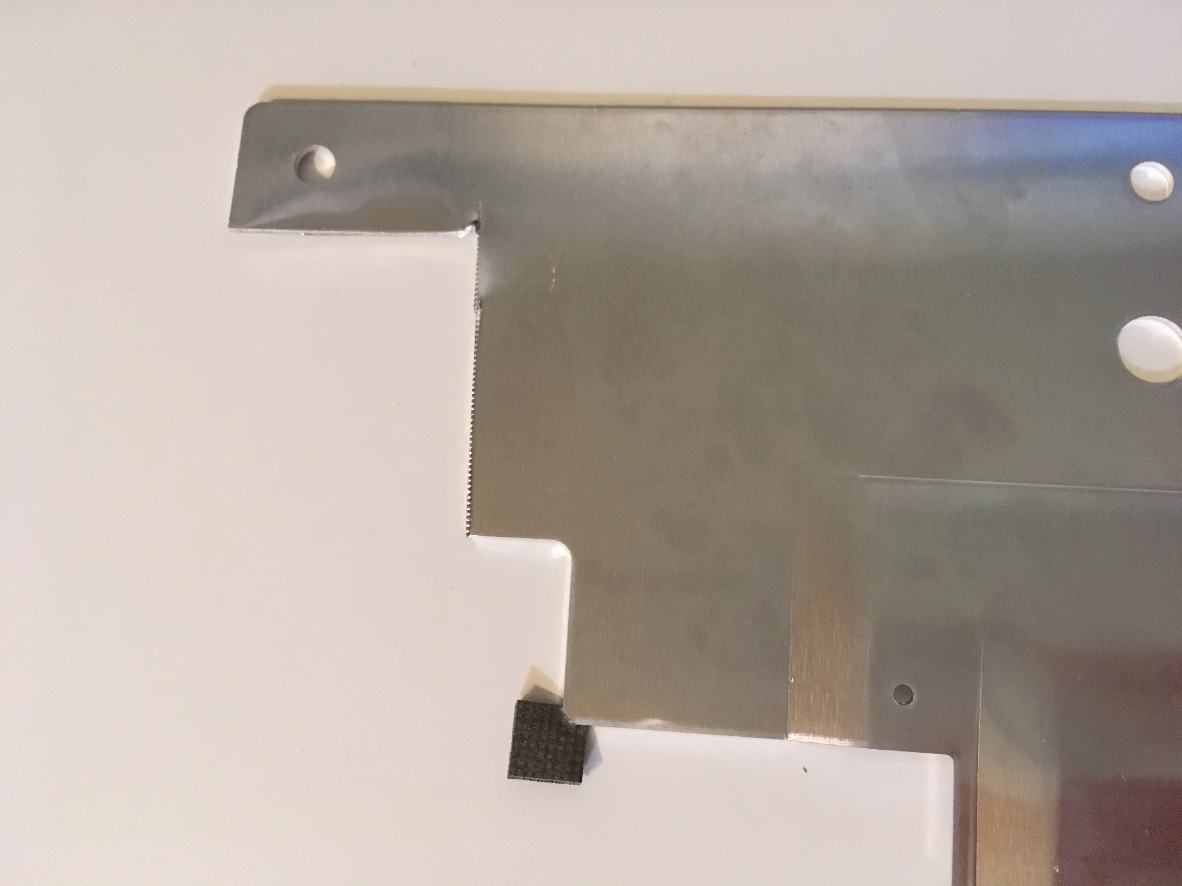 With your trusty metal cutting scissors (or whatever tool you prefer) you will need to cut out room for our enclosure internals to fit within: